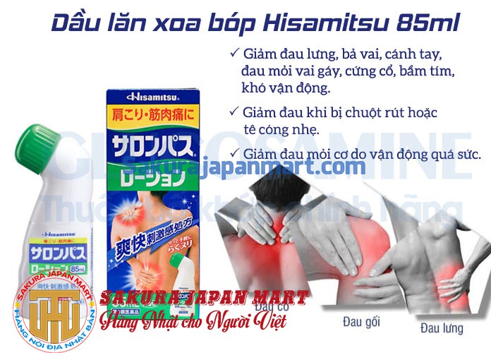 - Salonpas Hisamitsu là sự lựa chọn hàng đầu của người Nhật và các nước trên thế giới. Với công dụng làm giảm nhanh những cơn đau nhức, mỏi cơ, bong gân, bầm tím... từ đó mang lại cảm giác thoải mái và thư giãn.