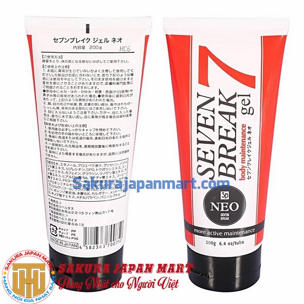 Kem tan mỡ Seven Break Neo Nhật Bản 200g với thành phần chính từ các chất nóng như chiết xuất hạt tiêu, chiếc xuất Eugiena, Caffeine, Glaucine,… giúp làm phân hủy nhanh chóng lượng mỡ thừa tích tụ lâu ngày trong cơ thể.