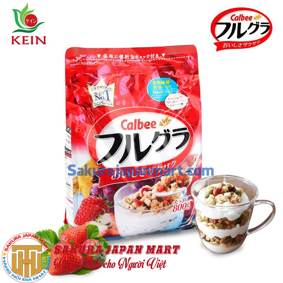 - Trong 750g Ngũ Cốc Trái Cây Calbee Nhật Bản mẫu mới, hàm lượng dinh dưỡng và các nhóm hoa quả được bổ sung đầy đủ hơn những mẫu trước đó. Cụ thể có dâu tây, táo, đu đủ, nho khô và hạnh nhân đều được tăng lên cả về chất lượng và số lượng. Nguyên liệu hạt bí ngô được thay đổi thành hạnh nhân, một thành phần không thể thiếu mang đến hương vị phong phú và đặc biệt của Ngũ cốc Calbee 750g loại mới.