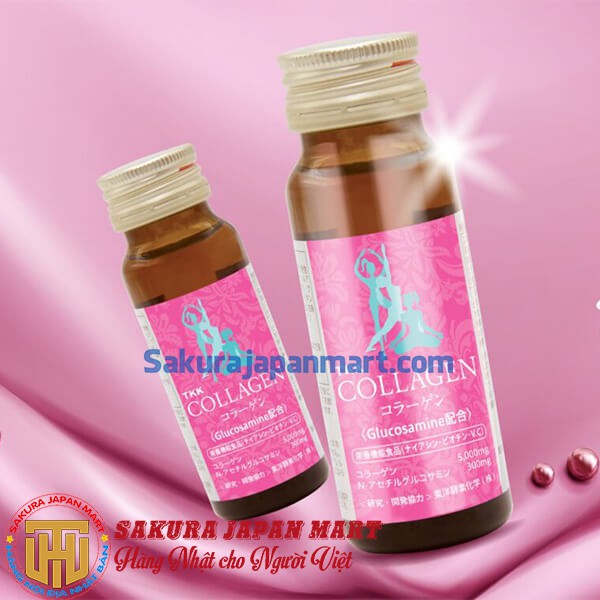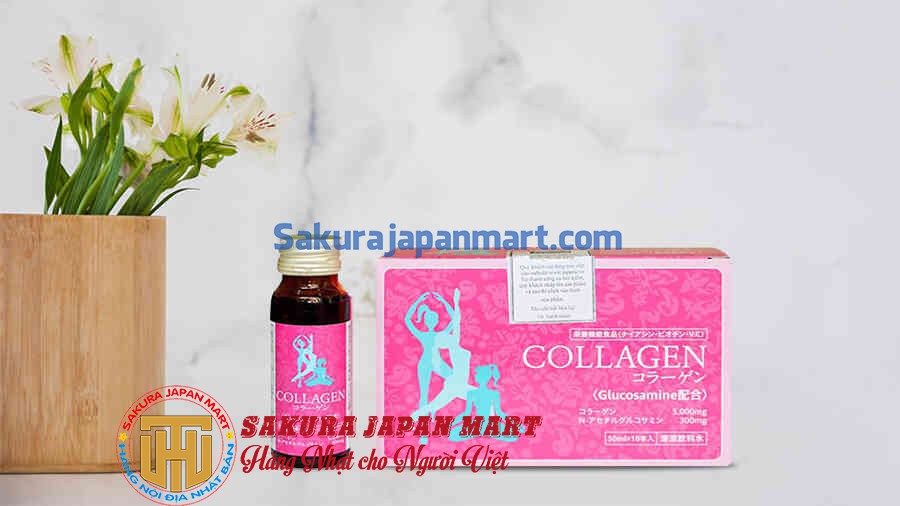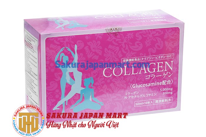 - Nước uống Collagen Glucosamine nổi bật với khả năng bổ sung hai dạng collagen quan trọng trong cơ thể là collagen type I và type II. Với khả năng bổ sung hàm lượng 5000mg collagen, nước uống giúp củng cố lại cấu trúc làn da, làm căng đầy nếp nhăn và dưỡng da săn chắc, mịn màng.