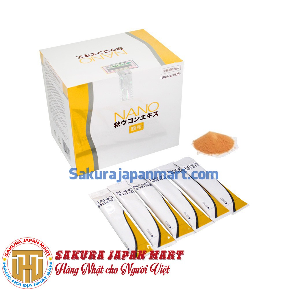 Tinh chất nghệ Okinawa; dextrin; lecithin đậu nành; trehalose; calcium phosphate với hàm lượng dinh dưỡng có trong 1 túi (2g) như sau: Năng lượng 4,5kcal; đạm 0,1g; carbohydrate 0,8g; chất béo 0,7g; sodium 0,01mg .