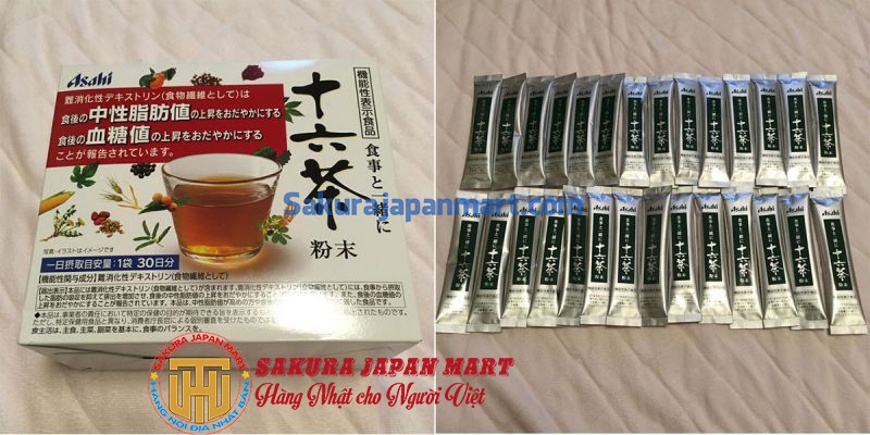 Bột trà hỗ trợ thải độc, giảm cân Asahi Juroku 30 túi lọc với nguồn nguyên liệu lành tính từ thiên nhiên gồm hỗn hợp lúa mạch ngọc trai, trà trung tâm, lúa mạch, gạo nâu, ngô, lúa mạch nảy mầm, đậu đen... giúp hỗ trợ giảm cân hiệu quả. Chỉ với 1 gói mỗi ngày đều đặn sẽ giúp bạn đốt cháy mỡ thừa, cân bằng đường huyết, đồng thời chăm sóc làn da mịn màng, săn chắc.
