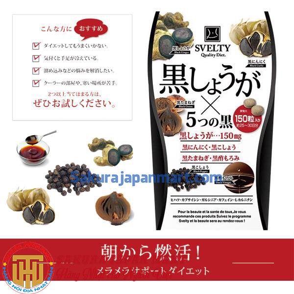 - Svelty Quality Diet với những nguyên liệu có công dụng “đốt cháy” mỡ thừa và cân nặng vào hết một sản phẩm này bao gồm giấm đen, tỏi đen, tiêu đen, gừng đen và hành tây đen.