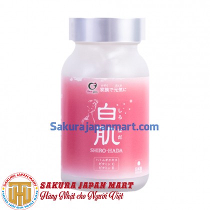 Viên uống trắng da Genki Fami Shiro Hada với các thành phần thiên nhiên như hạt ý dĩ, hoa trà đỏ, dầu Oliu, Vitamin E… giúp ức chế sự tổng hợp sắc tố Melanin để nuôi dưỡng da trắng sáng, đều màu.