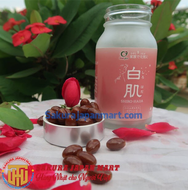 - Viên uống trắng da Genki Fami Shiro Hada được chiết xuất từ các thành phần thiên nhiên như hạt ý dĩ, hoa trà đỏ, dầu Oliu… giúp bạn dưỡng da trắng sáng, đều màu từ bên trong một cách an toàn. Đồng thời, viên uống còn hỗ trợ làm chậm quá trình lão hóa da, cải thiện các nếp nhăn, sự điều tiết bã nhờn và giảm thiểu mụn nổi trên da.